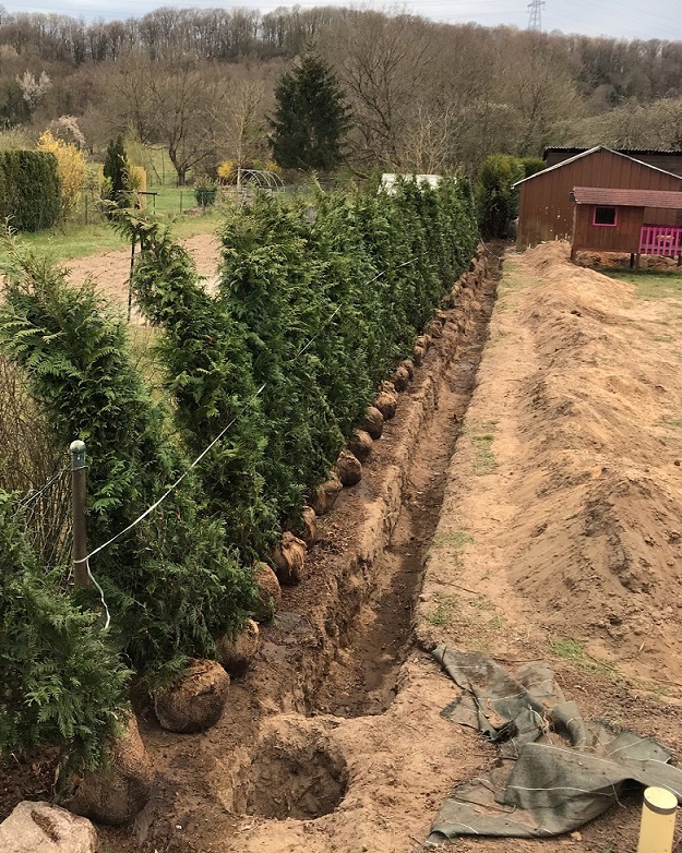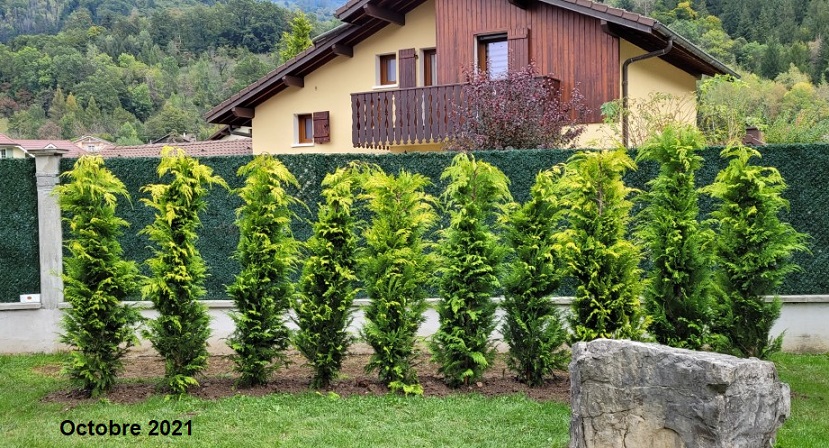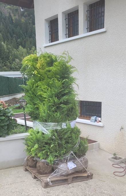 "Je vous remercie vivement pour les magnifiques thuyas ! Nous les avons tous plantés aujourd’hui. Merci encore pour tous vos conseils que je vais m’efforcer de suivre et tous mes remerciements à votre livreur qui m’a beaucoup aidé."