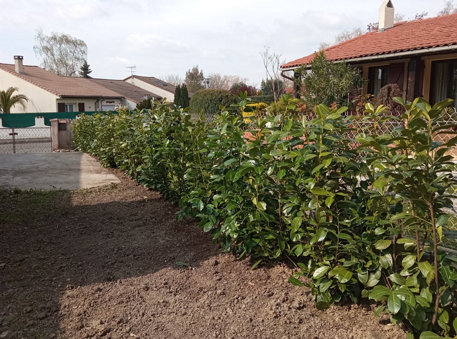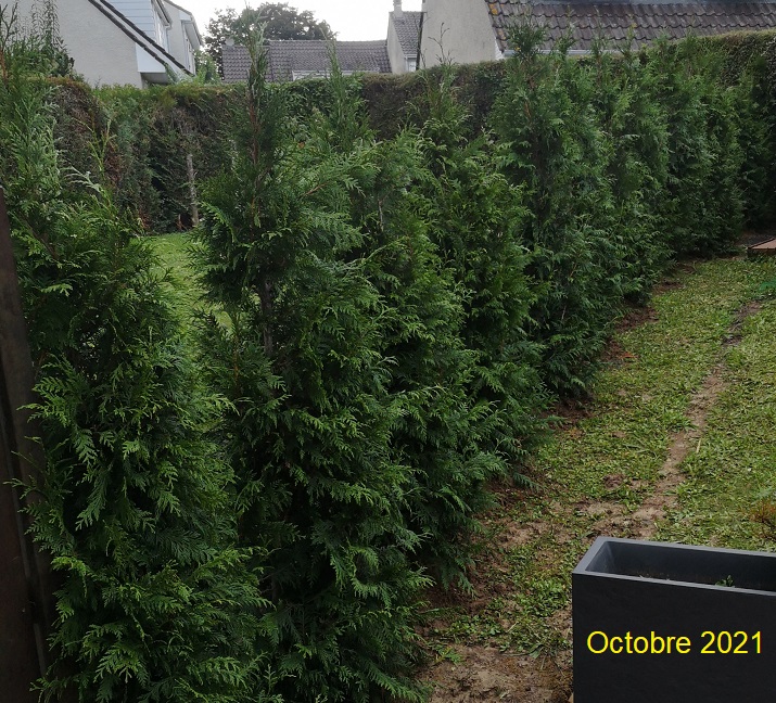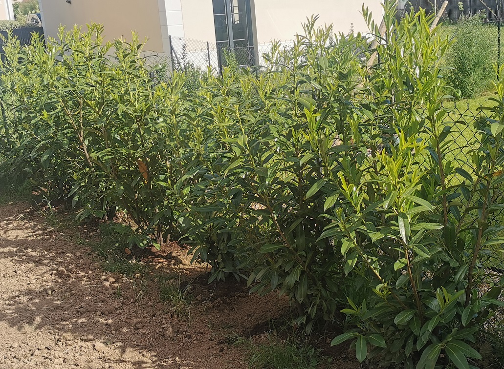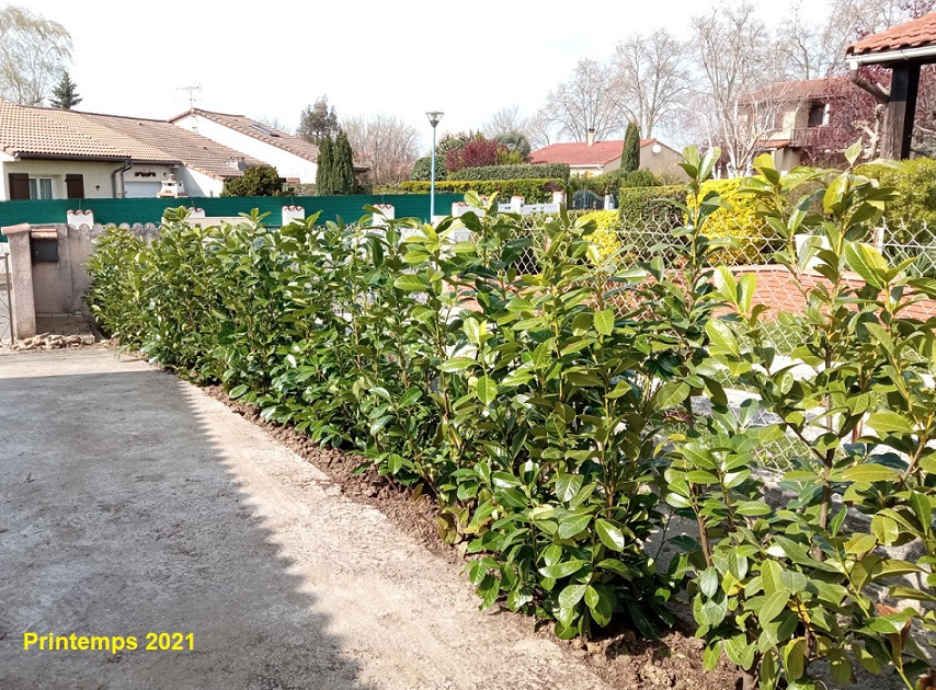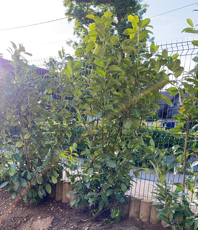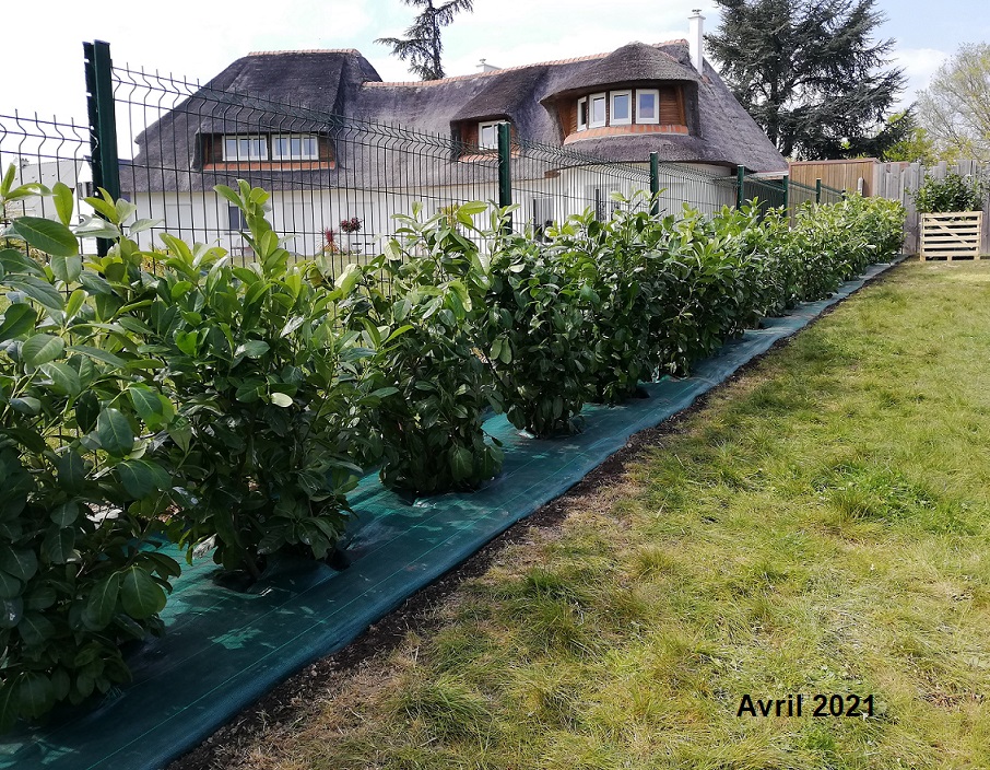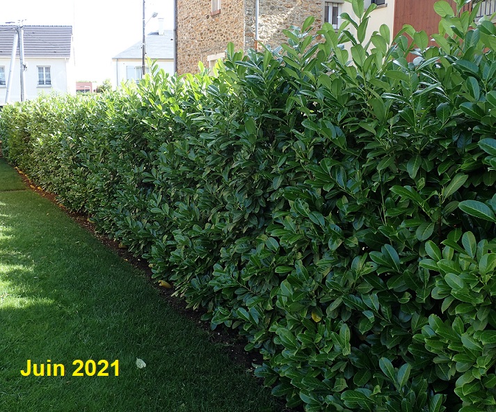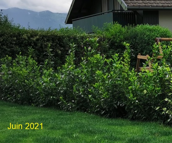 "A l'automne 2019, nous avons planté des lauriers 175/200. Résultat magnifique dès 2020, et encore mieux cette année. La longue sécheresse de 2020 s'est bien passée grâce à un arrosage généreux, la reprise a été parfaite. Pour 2021, c'est la même chose, arbres très vigoureux, nombreuses pousses et obtention d'un rideau cache vue sur la majeure partie de la haie"