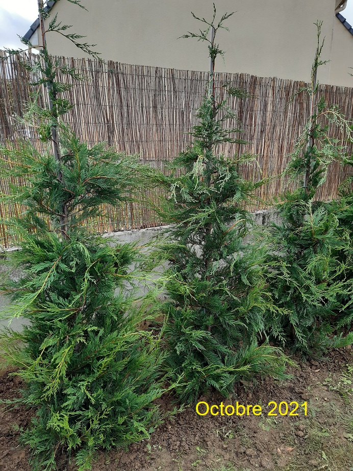 "Suite à l'achat 14 Cyprès de Leyland (150 / 175 cm à l'achat), je les ai planté dans mon jardin en Octobre 2020 pour faire une haie. Ci-joint une photo de nos plantes, comme vous pouvez le voir, les plantes sont bien reprises (200 / 225 cm en août 2021)"