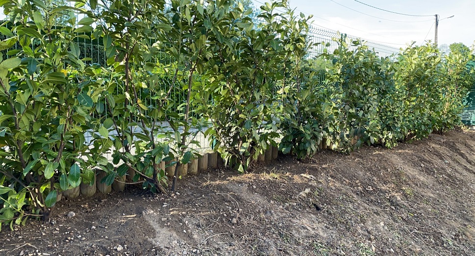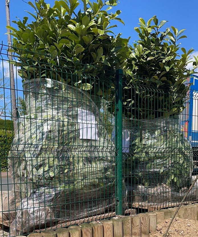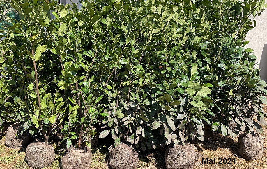 15 x Laurier du Portugal 175/200 cm, 15 x Laurier 'Novita' 175/200 cm, 15 x Photinia ‘Red Robin’ 175/200 cm, 4 x Laurier Caucasica 150/175 cm (Octobre 2021)