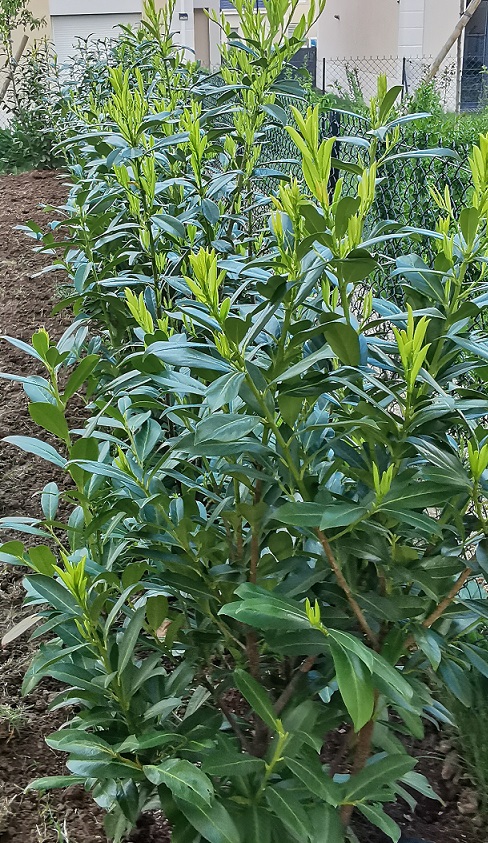 Laurier Caucasica, Laurier du Portugal, Laurier 'Genolia, Troène (Printemps 2021)