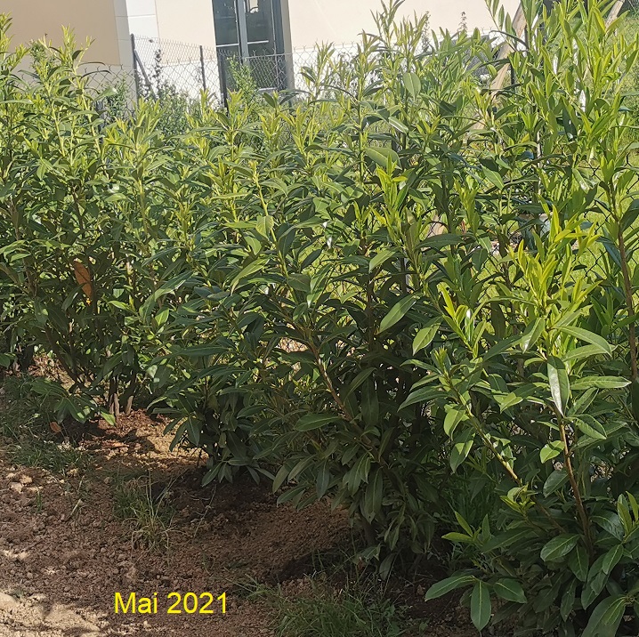 "Nous avons planté nos Lauriers du Caucase (environ 1m25 de hauteur) en octobre dernier. Les arbres sont très beaux et ils poussent bien. Beaucoup de nouvelles feuilles. Je vous joins quelques photos d'aujourd'hui (mai 2021) "