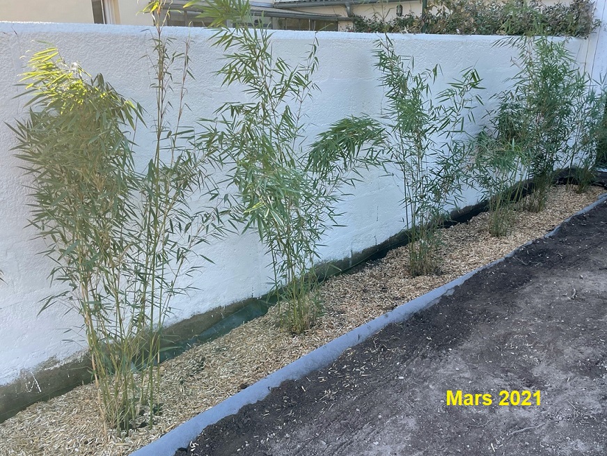 "Merci pour la livraison et ses plantes de bambou. C’est bien passé et ils ont été rempoter le jour même dans une bonne terre. Les bambous ont l’air en bonne santé. Je constate pas mal de petits turions, ce qui laisse présager de bon tige au printemps.Voici une photo de la plantation et merci encore. "