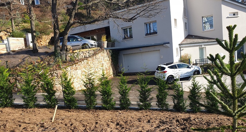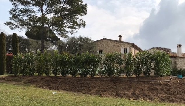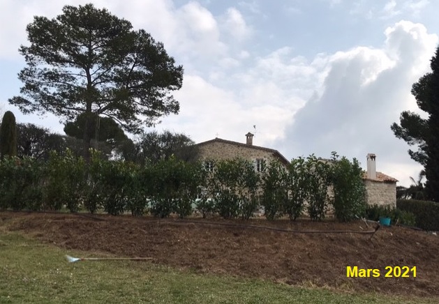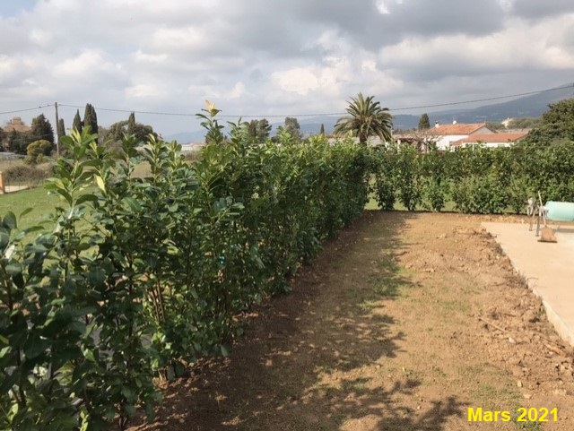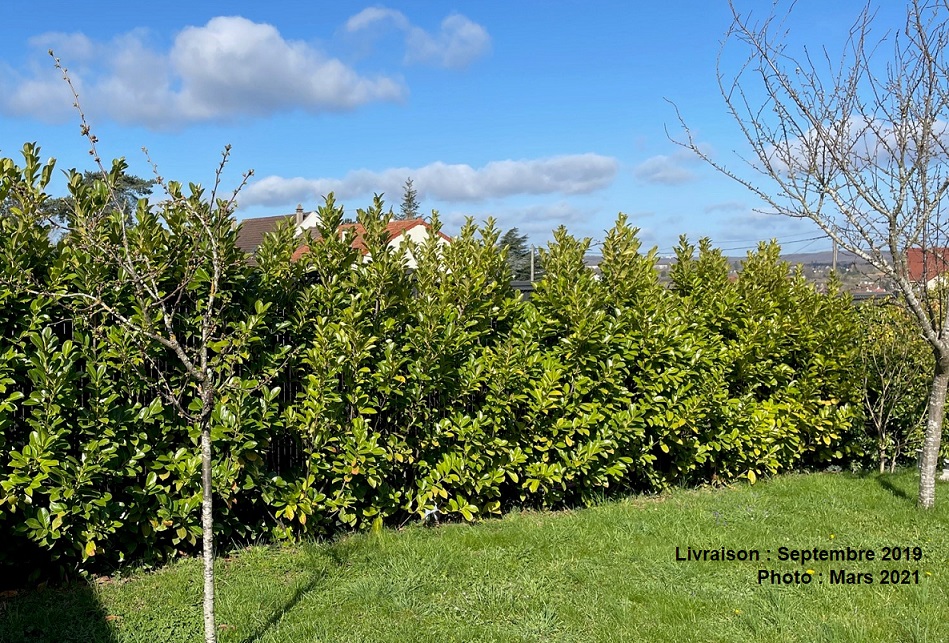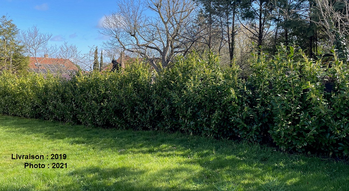 "Nous avons planté vos lauriers en 2019. Je vous transmets quelques clichés des plantations d'aujourd'hui (printemps 2021). Je vous remercie pour la qualité de votre service et de vos produits.  "