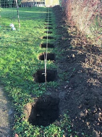 "Je vous envoie des photos de notre nouvelle haie de thuyas. L’objectif était de créer un brise-vent, de bloquer la vue du voisinage et de séparer notre grand terrain en jardin d’agrément et verger. C’était beaucoup de travail mais nous sommes ravis du résultat  "