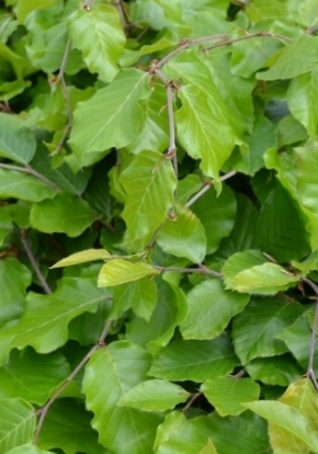 Le Hêtre commun est souvent utilisé en tant que haie pour son feuillage. Il pousse rapidement (environ 50 cm par année). Le hêtre possède des feuilles caduques, mais ses feuilles roussissent et restent sur la plante jusqu'à l'arrivée des nouvelles pousses vert clair au printemps, donc il garde une belle apparence toute l'année. Le feuillage d'un Hêtre commun (Fagus sylvatica) vire au jaune vif à l'automne. Avec le chêne, le hêtre est le plus populaire des arbres en France. Un arbre idéal pour former rapidement une haie compacte. Le Hêtre commun préfère les endroits ensoleillés ou mi-ombragés et supporte très bien les endroits venteux.