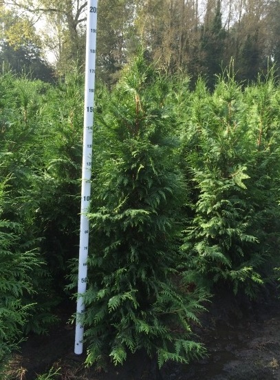 Le Thuya géant est une plante de haie idéale pour clôturer un jardin et protéger des vis-à-vis. Un conifère robuste au feuillage vert foncé aromatique, très compact et dense, parfait brise vue, brise vent. Un conifère de qualité Extra: donc bien fournie, forte et résistant. Cette espèce accepte tous les sols et elle se plaît au soleil ou à mi-ombre. Elle a une croissance semi-rapide et peut pousser ca. 30 cm par an, son port est conique et pyramidal. Le Thuya demande peu d' entretien, il est recommandé de tailler les thuyas une ou deux fois par an.