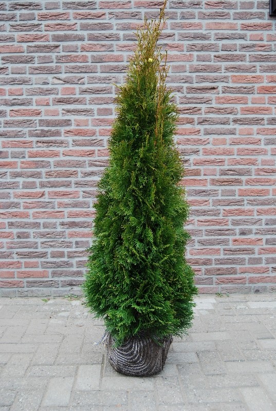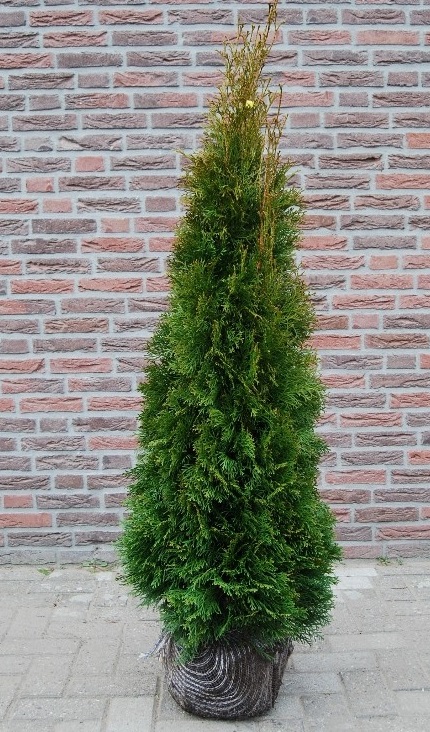 Le Thuya Smaragd (Thuja Emeraude) est l'un des plus beaux conifères, élégant et exclusif. Un conifère à port naturellement étroit et compact. Un très bel arbuste, parfait pour une belle haie. Le Smaragd garde son feuillage et est facile à entretenir. Sa vitesse de croissance est moyennement rapide (ca. 25 cm par an) et ses dimensions adultes sont d'environ 5m de hauteur et 2m de largeur. Feuillage vert tendre toute l'année, ne brunissant pas l'hiver. La couleur vert frais de son feuillage lui ont valu son nom de Smaragd, ce qui signifie 'émeraude' en français. Il convient idéal pour les jardins mais aussi les passages étroits.
